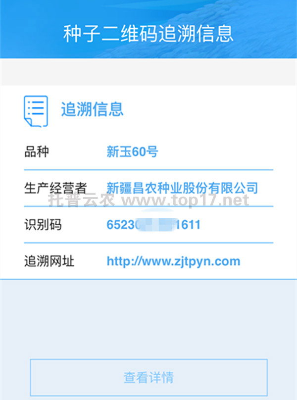 托普農(nóng)作物種子二維碼標簽追溯系統(tǒng)web界面及手機APP: