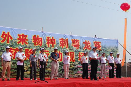 2009年7月6日,農(nóng)業(yè)部科技教育司、河北省農(nóng)業(yè)廳和中國農(nóng)學(xué)會聯(lián)合在河北省召開外來入侵生物刺萼龍葵集中滅除行動現(xiàn)場會,動員社會各界力量,開展外來入侵生物集中滅除行動,提高廣大干部群眾的知毒、識毒、防毒和滅毒能力。農(nóng)業(yè)部科教司王衍亮巡視員出席鏟除現(xiàn)場會,河北省當(dāng)?shù)馗刹咳罕?00多人參加了現(xiàn)場鏟除,中央電視臺、中央人民廣播電臺等新聞媒體也參加了鏟除現(xiàn)場會。
