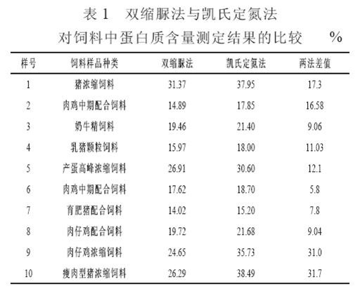 雙縮脲法和凱氏定氮法測定飼料中蛋白質含量的比較研究