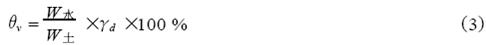 式中:θv ─土壤體積含水量( %) ;γd ─土壤干容重(g/ cm3 ) ;其它符號同前。