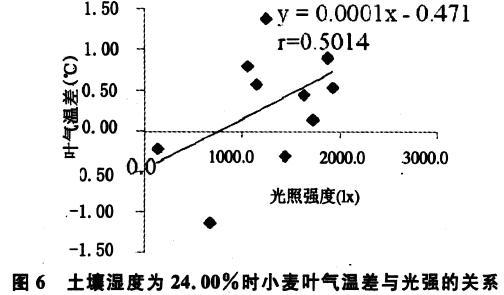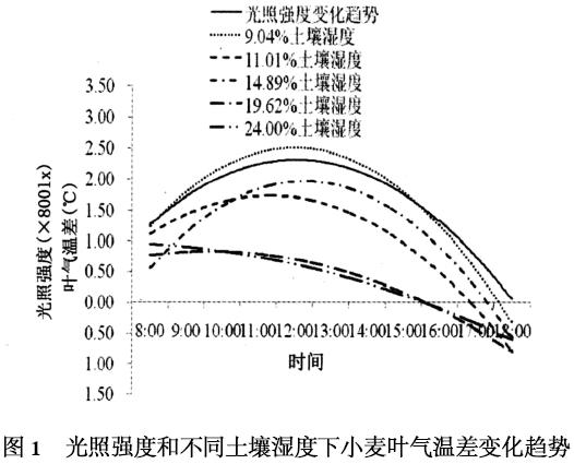 不同土壤濕度下小麥葉氣溫差對(duì)光照強(qiáng)度的反應(yīng)及對(duì)蒸騰的影響