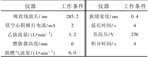 膏狀的葉綠素中主要是葉綠素鎂鈉鹽,在進(jìn)行試驗(yàn)的時(shí)候,稱取0.100 5 g葉綠素鎂鈉鹽,配制成50.00 mL葉綠素的儲(chǔ)備液。準(zhǔn)確移取1.00 mL葉綠素鎂鈉溶液于8只50.00 mL容量瓶中,再分別加入0.00、2.00、2.20、2.40、2.60、2.80、3.00、3.20 mL的50.00 mg·L-1Mg2+標(biāo)準(zhǔn)溶液,定容,搖勻。按一下的測(cè)定環(huán)境要求使用原子吸收分光光度計(jì)測(cè)定并繪制工作曲線,并計(jì)算線性回歸方程。就可以通過(guò)這一線性方程來(lái)進(jìn)行計(jì)算葉綠素含量了。