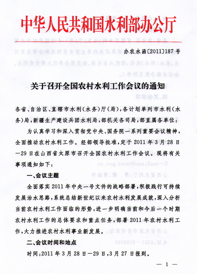 您現(xiàn)在的位置:中國(guó)農(nóng)業(yè)儀器網(wǎng) > 行業(yè)動(dòng)態(tài) >關(guān)于召開全國(guó)農(nóng)村水利工作會(huì)議的通知