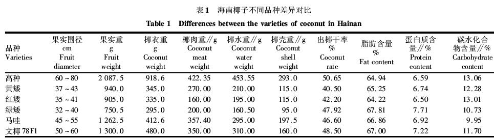 差異性對比主要分析海南椰子各品種間在形態特征、椰果組分和品質上的差異。差異如下圖。