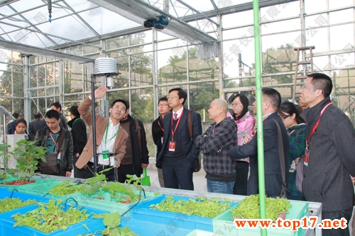 圖為:參觀溫室大棚——物聯網技術展示區(qū)