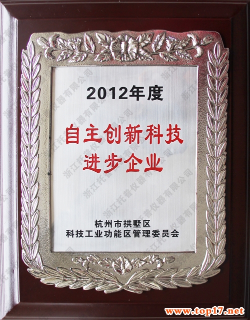 根據(jù)杭州市拱墅區(qū)科技工業(yè)功能區(qū)管委會(huì)研究決定,為了進(jìn)一步引導(dǎo)企業(yè)自主創(chuàng)新,走新型工業(yè)化道路,加快發(fā)展高薪技術(shù)產(chǎn)業(yè),不斷優(yōu)化產(chǎn)品結(jié)構(gòu),特授予托普儀器“自主創(chuàng)新科技進(jìn)步企業(yè)”榮譽(yù)稱(chēng)號(hào)。