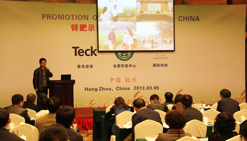 在上午的鋅肥示范推廣技術培訓與研討會上,會議邀請了國際專家加拿大泰克資源安德魯·格林教授、國際鋅協會樊明憲教授、國內專家浙江大學副教授馮英、天津市土壤肥料工作站鄭育鎖科長講解了鋅肥技術以及鋅肥在中國農業生產中試驗示范研究結果。據國際鋅協會報道,全球種植谷物的土地中有50%存在缺鋅的潛在危險、而我國土壤普遍缺鋅。農作物缺鋅主要與干旱缺水、鹽堿、漬澇等農田環境有關,科學施用鋅肥是解決農業缺鋅問題的主要途徑。近年來,隨著節水農業的不斷發展,水肥一體化逐漸成為新的鋅肥科學施用方式。科學施用鋅肥,能夠提高作物產量,改善農產品品質。為促進鋅肥的科學施用,廣泛宣傳鋅對作物生產和人體健康的作用,全國農技推廣中心與國際鋅協會、加拿大泰克資源合作開展鋅肥示范推廣工作,并大力培養應用技術人才、開展田間技術指導。