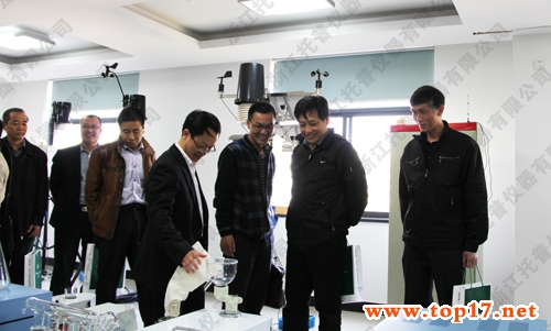 圖為:加拿大泰克資源安德魯·格林教授、國(guó)際鋅協(xié)會(huì)樊明憲教授參觀托普儀器產(chǎn)品