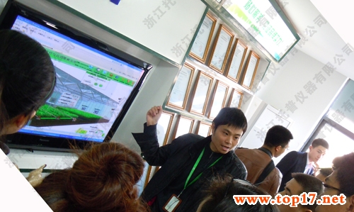 圖為:托普儀器技術(shù)人員為參觀者講解物聯(lián)網(wǎng)知識(shí)