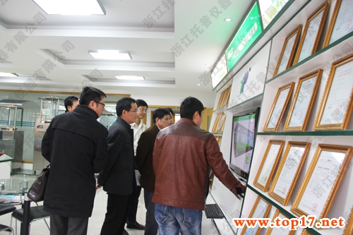 參觀結(jié)束后,陳總經(jīng)理還為各位領(lǐng)導(dǎo)詳細(xì)講解了托普儀器物聯(lián)網(wǎng)系統(tǒng)在設(shè)施園藝、果園、墑情監(jiān)測、農(nóng)場等中的實(shí)際應(yīng)用以及以及由托普儀器協(xié)助完成的成功案例。吳處長對托普如今的物聯(lián)網(wǎng)研發(fā)技術(shù)表示了肯定,他說到,如今要做好現(xiàn)代化農(nóng)業(yè)建設(shè),就需要像托普儀器這樣有前瞻性的企業(yè)起到良好的帶頭作用。最后,吳處長等領(lǐng)導(dǎo)希望托普儀器為浙江省農(nóng)業(yè)現(xiàn)代化多出力,并鼓勵(lì)托普要堅(jiān)持走信息化發(fā)展道路,努力研發(fā)新型農(nóng)業(yè)技術(shù),促進(jìn)浙江省農(nóng)業(yè)現(xiàn)代化的發(fā)展。