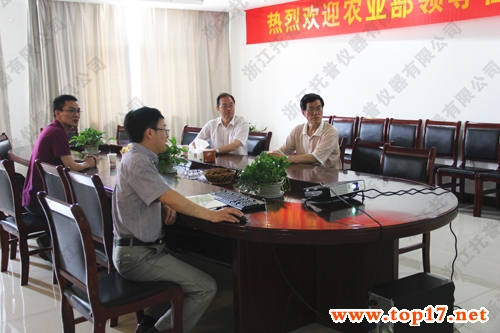 2013年5月25日,全國農(nóng)業(yè)技術推廣服務中心鄧光聯(lián)副主任、品種管理處谷鐵城處長蒞臨托普參觀指導。托普儀器陳渝陽總經(jīng)理、朱旭華副總經(jīng)理全程陪同并作公司發(fā)展詳細介紹。