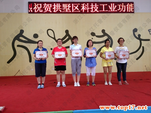 傍晚時(shí)分,比賽進(jìn)入尾聲,大賽評委為一眾選手打分排名。托普儀器參賽團(tuán)隊(duì)獲得團(tuán)體獎(jiǎng)第四名,公司參賽員工王秀芳獲得那字單打第五名,諸葛遠(yuǎn)兵獲得男子單打第六名,大賽舉辦方對獲獎(jiǎng)選手進(jìn)行了嘉獎(jiǎng)。