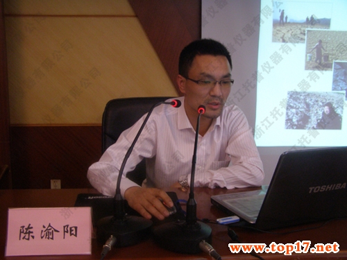 圖為:托普儀器銷售經理陳曦先生現場發言