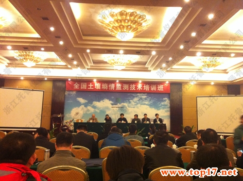 2013年3月5日至7日,全國土壤墑情監測技術培訓班在杭州順利舉辦,全國各省市土肥站代表120余人參加了此次會議。全國農技推廣中心節水處高祥照處長主持會議,全國農技推廣中心杭大鵬書記、農業部種植業管理司王金等處長、浙江省農業廳陳利江副廳長、浙江省農產品質量檢測中心黃國洋主任、加拿大泰克資源安德魯·格林教授、國際鋅協會樊明憲教授出席了會議開幕式。浙江托普儀器有限公司作為墑情儀器設備研發生產企業全程參與了此次會議。會上,托普儀器銷售經理陳曦先生應邀發表了關于“自動化土壤墑情監測技術的研發和應用狀況”的演講。