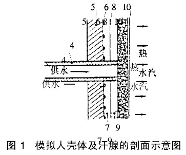 以芬蘭技術研究中心(VTT)研制的出汗暖體模擬人為例簡介如下,模擬人殼體及汗腺的剖面結構示意如圖1所示。