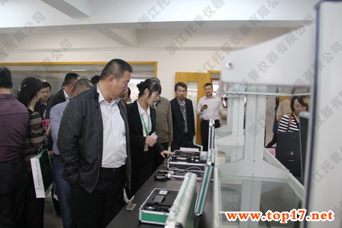 圖為:考察團視察托普儀器生產基地
