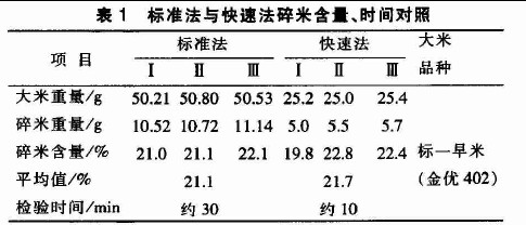 現(xiàn)行國(guó)家標(biāo)準(zhǔn)《糧食、油料檢驗(yàn)碎米檢驗(yàn)法》檢測(cè)儀器較貴、時(shí)間長(zhǎng)、速度慢,不適用于大米生產(chǎn)過(guò)程中碎米含量檢驗(yàn)與控制。碎米含量快速檢驗(yàn)法可有效解決這些問(wèn)題。