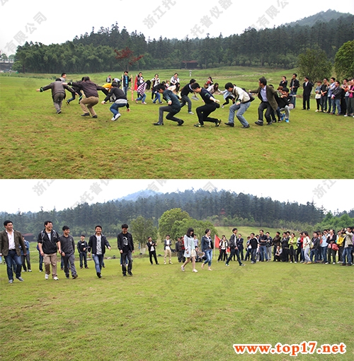 上午的拓展活動在園中翠綠色的大草坪上展開,托普儀器近300人的龐大隊伍被分成了10個小組進(jìn)行團(tuán)體比賽。兩場比賽分別為“快樂抱抱爆”和“穿越生死網(wǎng)”,雖然游戲的名字和比賽的方式不同,但同樣都是關(guān)于速度與時間的較量。