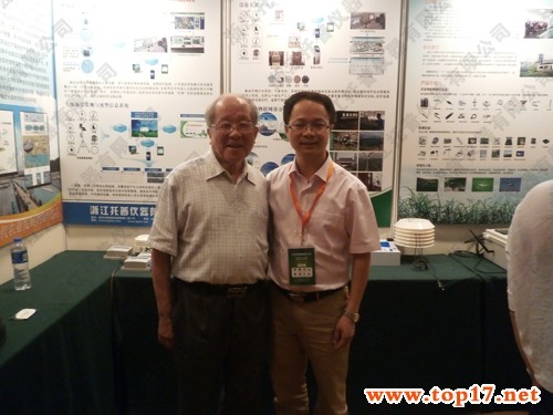 圖為:汪懋華院士蒞臨托普儀器展臺并與朱旭華副總經(jīng)理合影