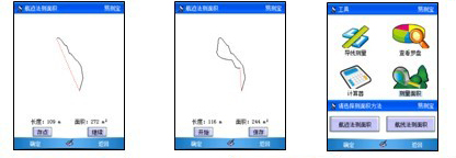 所測面積同時顯示:所測圖形,面積(平方米或畝),周長(米),可實時保存所測航點保存為坐標點,即為坐標點的經(jīng)緯度,高程等信息