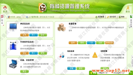 (1)保藏管理:記錄育種資源入庫、庫的時間和數量、設置預警提醒等相關信息;根據出入庫操作,系統實時更新數據;并提供庫存核對、檢驗檢測功能,實現育種資源動態管理。