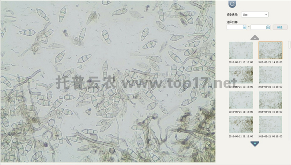 托普農(nóng)作物重大病蟲害數(shù)字化監(jiān)測預(yù)警系統(tǒng)由蟲情信息自動采集分析系統(tǒng)、孢子信息自動捕捉培養(yǎng)系統(tǒng)、遠(yuǎn)程小氣候信息采集系統(tǒng)、病蟲害遠(yuǎn)程監(jiān)控設(shè)備、害蟲性誘智能測報系統(tǒng)等設(shè)備組成,可自動完成蟲情信息、病菌孢子、農(nóng)林氣象信息的圖像及數(shù)據(jù)采集,并自動上傳至云服務(wù)器,用戶通過網(wǎng)頁、手機(jī)即可聯(lián)合作物管理知識、作物圖庫、災(zāi)害指標(biāo)等模塊,對作物實(shí)時遠(yuǎn)程監(jiān)測與診斷,提供智能化、自動化管理決策,是農(nóng)業(yè)技術(shù)人員管理農(nóng)業(yè)生產(chǎn)的“千里眼”和“聽診器”。